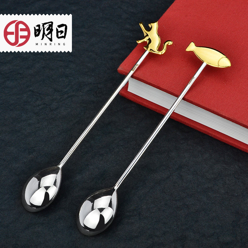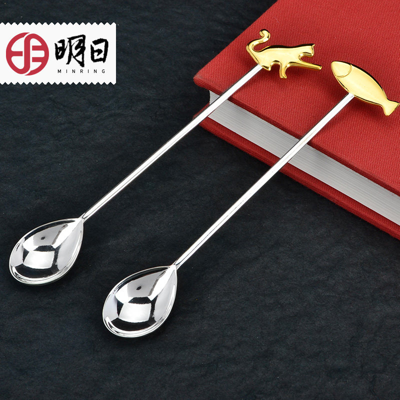 Tomorrow Silver Coffee Spoon 999 Sterling Silver Spoon Long Handle Gold Stirring Mini 2G Light Luxury Cute High-end Exquisite