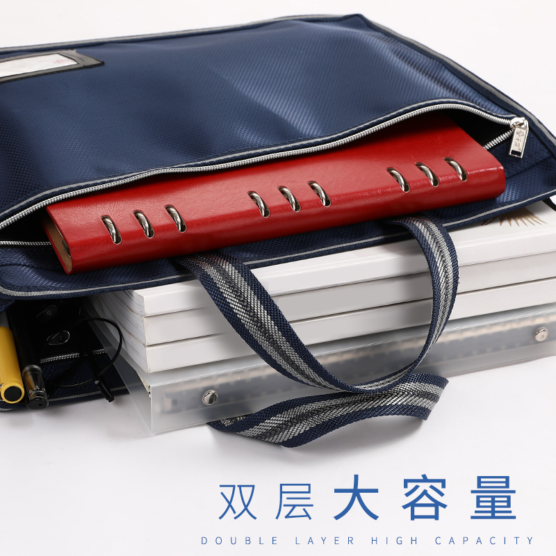 File Bag Canvas Business Oxford Office Bag Student Hand Information Pull Chain Waterproofing Large Capacity Conference Training Documents Bag Men's Business Bags Briefcase Briefcase Bags Female Multifunction Storage Bag
