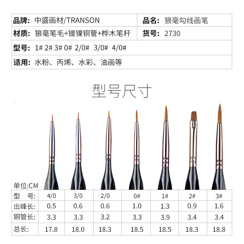 Zhongsheng painting material Wolf brush Nylon hook line pen Watercolor Students use art gouache Chinese painting Oil painting line pen Brush pen