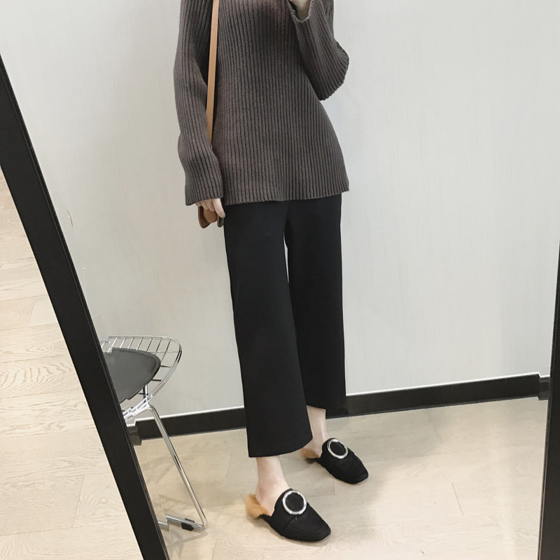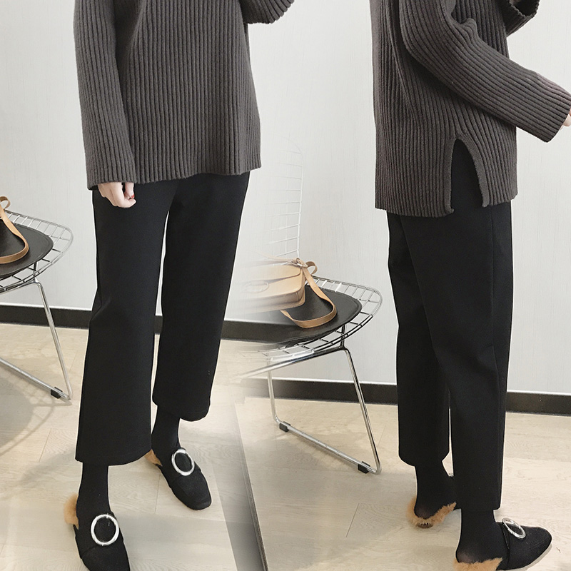 Pregnant Woman Pants Spring Autumn Broadlegged Pants 90% Straight Cylinder Black Pants Loose Elastic Inner Lap Pants Outside Wearing Fashion Big Size Wave