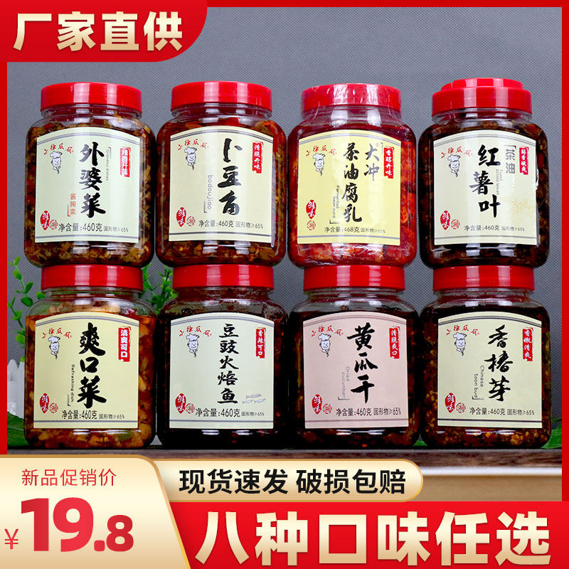 Chinese toon leaves 460g bottle (recommended by the store manager) 460g bottle of grandmother's food 460g bottle of fresh vegetables 460g bottle of bean curd 460g bottle of dried cucumber 460g bottle of tea oil sweet potato leaves 460g bottle of roasted fish in fermented bean curd 468g bottle of tea oil