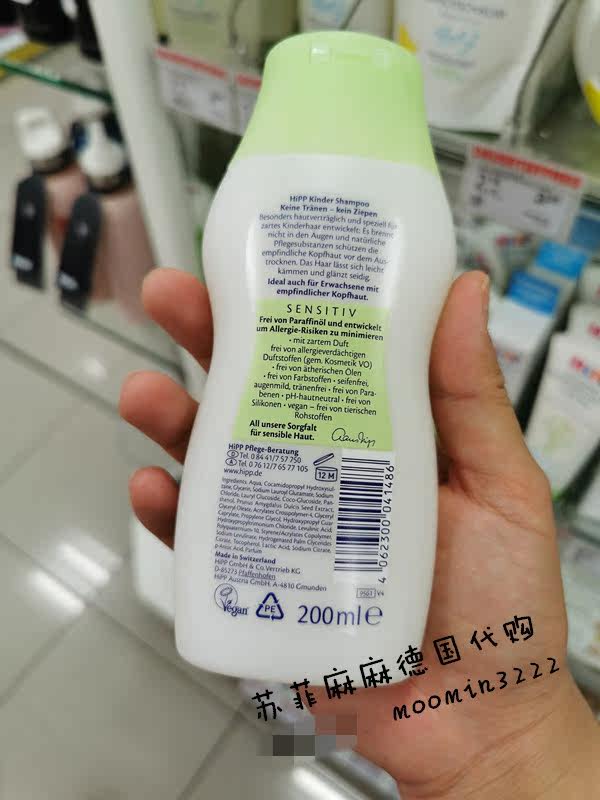 Spot German Xibao HIPP organic almond oil children's middle-aged children's anti-allergy no tears shampoo 200ml