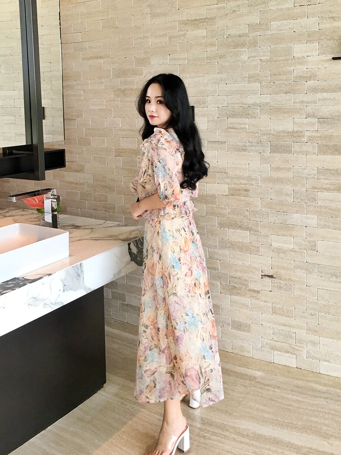 Tie-up ruffled printed ruffles