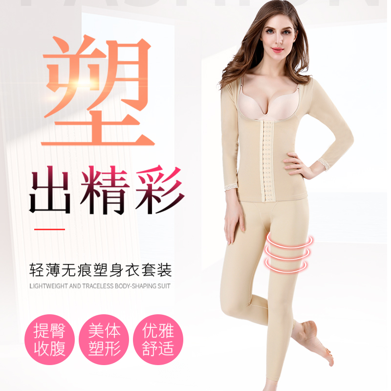 Breathable buckles to strengthen the abdomen waist two-piece body sculpting clothing women's summer ultra-thin suit body underwear lifts buttocks and arms