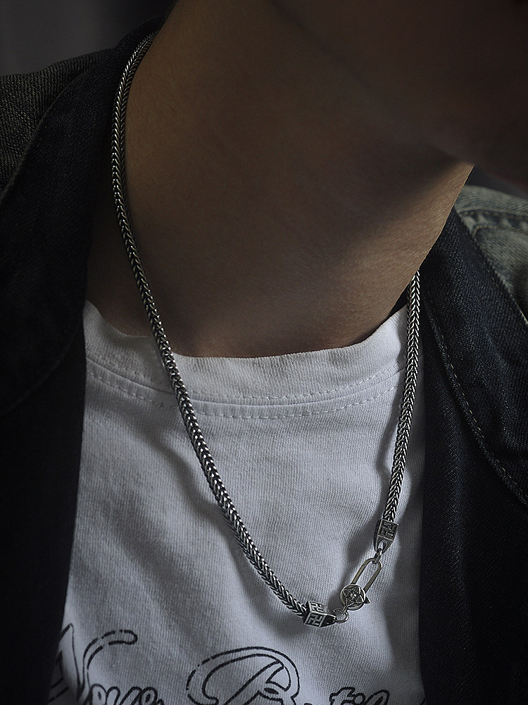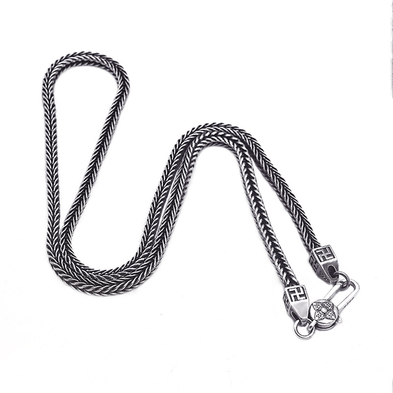 S925 Silver six-character truth Swastika fox tail Necklace made of old vintage Vajra amulet for men and women imported from Italy