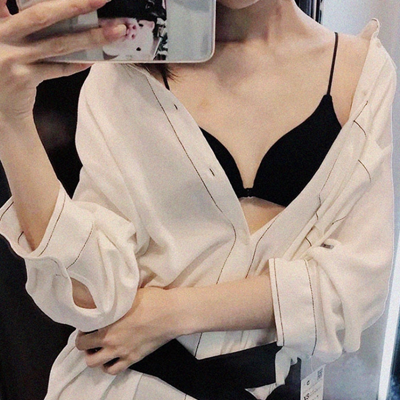 Underwear women's no steel ring front buckle sexy summer thin triangle cup gathered on the back of the beauty back thin shoulder strap small chest bra