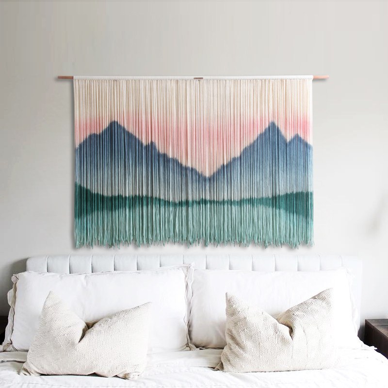 Blue Art Square Nordic hand-woven cotton tapestry living room bedroom bedside decoration homestay soft art tapestry