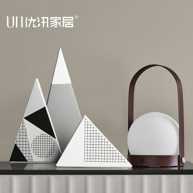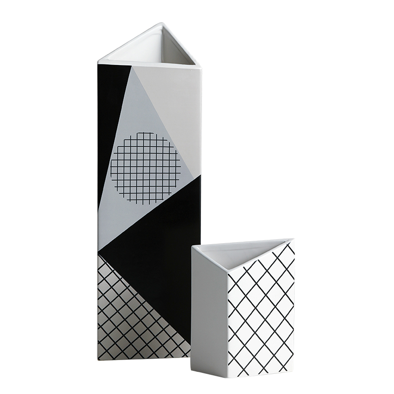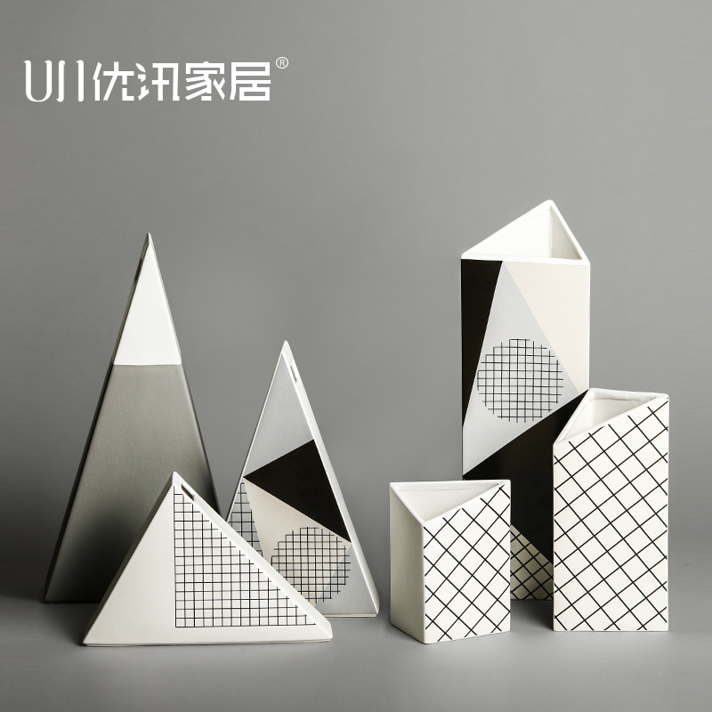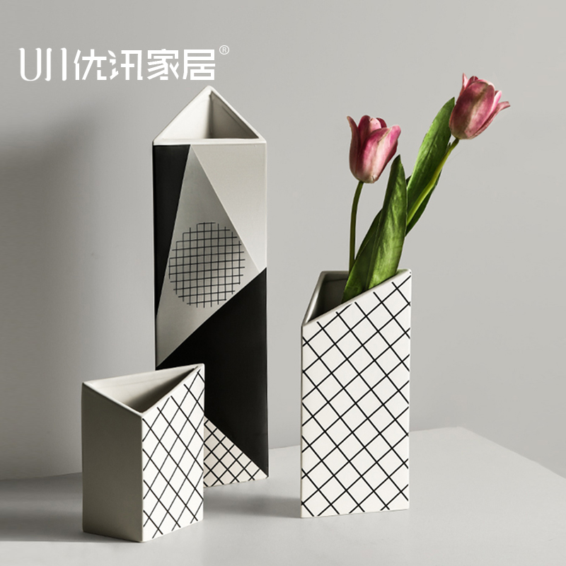 High-grade vase ornaments living room flower arrangement Modern simple white geometric ceramics Light luxury home soft decorations flowers