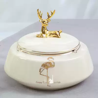 European-style light luxury decoration with lid ashtray Ceramic decoration luxury household living room large new Chinese creative personality