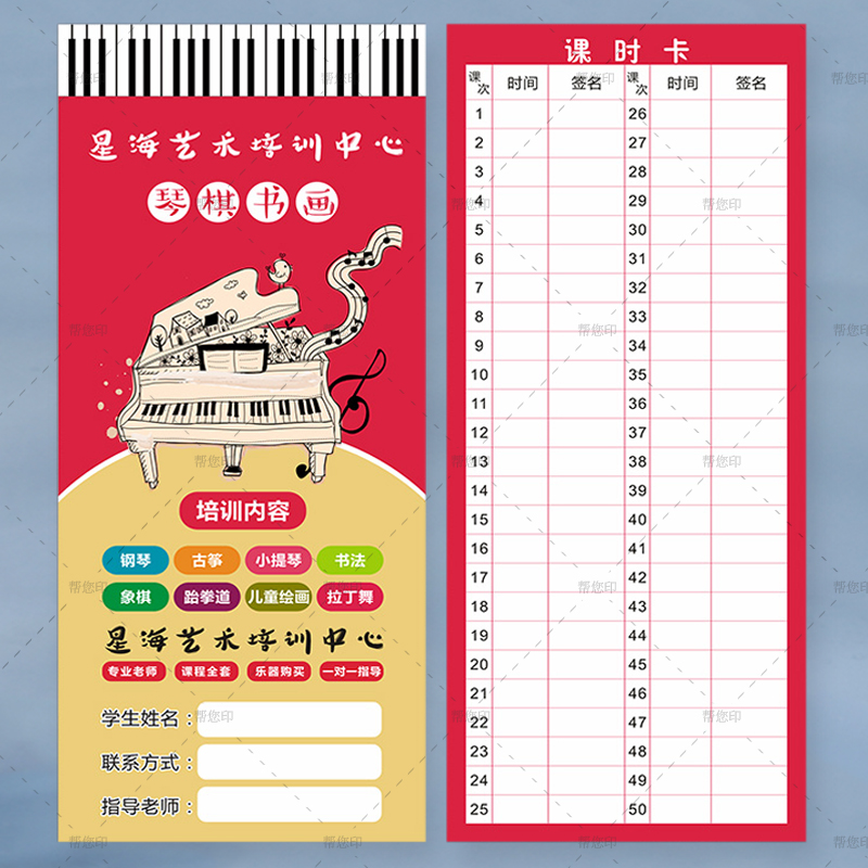 Training remedial class student class time card custom art dance painting room student attendance sign-in table design and printing
