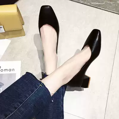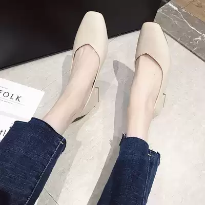 Two pairs of thick heel shoes women's spring and autumn 2021 new Korean version of shallow mouth wild high-heeled mid-heel nude square head grandma shoes