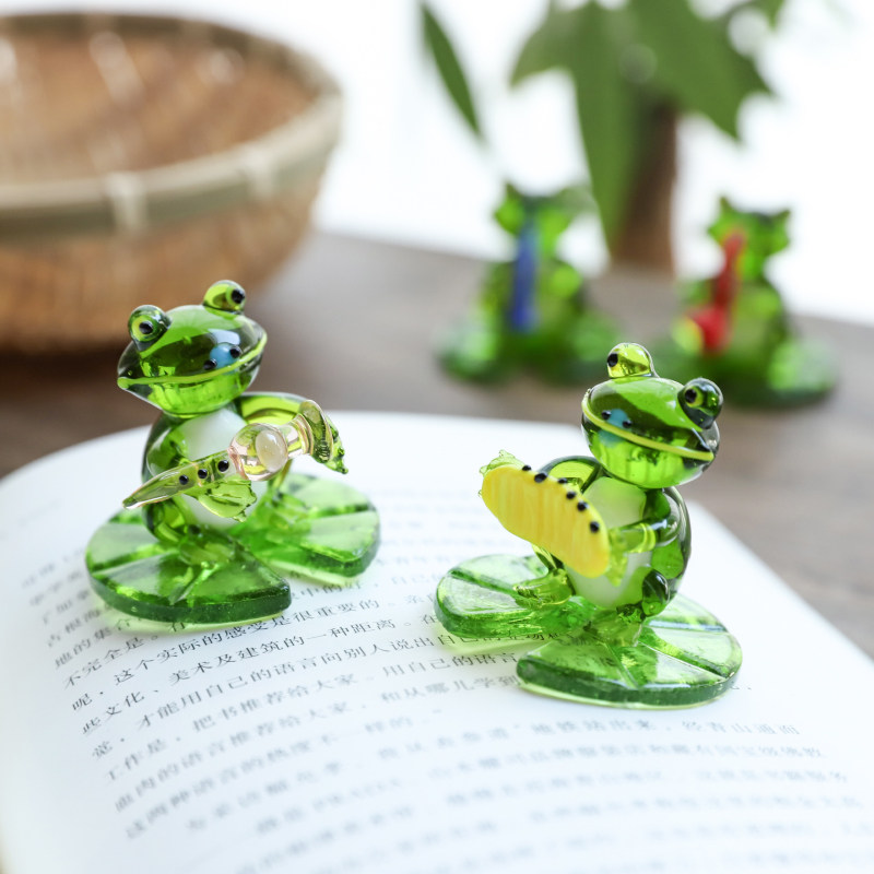 Japanese pure handmade summer story music crown frog band modeling living room desktop home glass ornaments