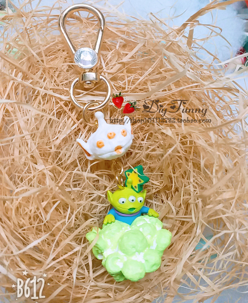 Cartoon Toy Story Three Eyes Popcorn Food Play Keychain Bag Pendant Creative Couple Keychain INS