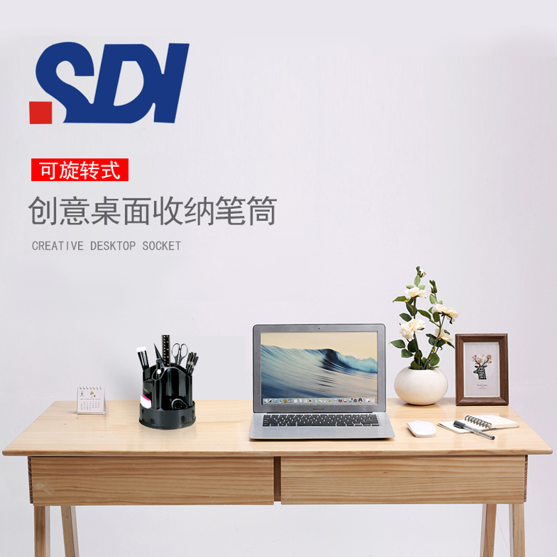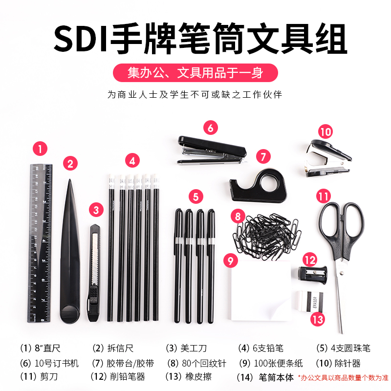 SDI hand card stationery 5 pieces suit students with office big number containing box desktop pen barrel creative rotation multifunction-Taobao