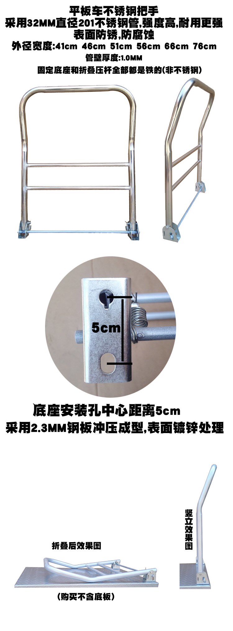 Trolley Stainless Steel Handle Carrying Car Folding Armrest Flatbed Truck Small Push Trolley Accessories Big Full Folding Fold