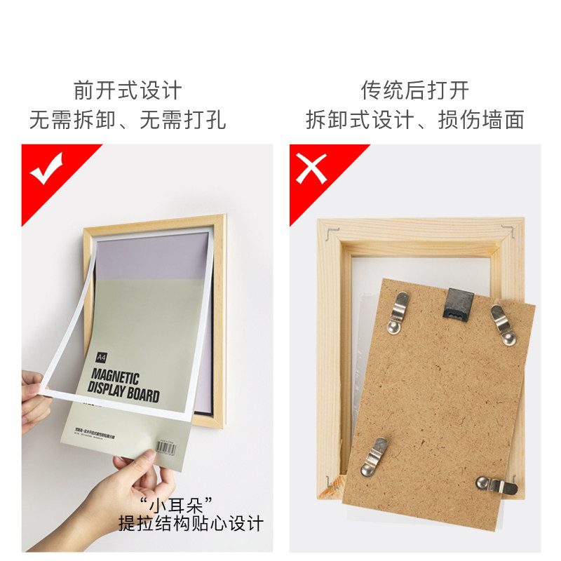 Solid wood photo frame Frame Magnetic Display Card Advertising Frame Hanging Wall Wooden Poster Frame Honor Certificate Business License Box