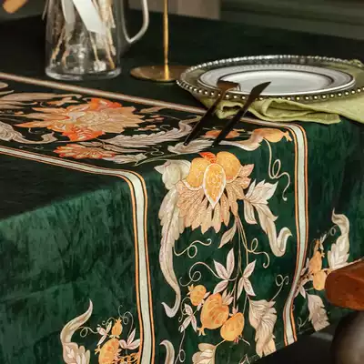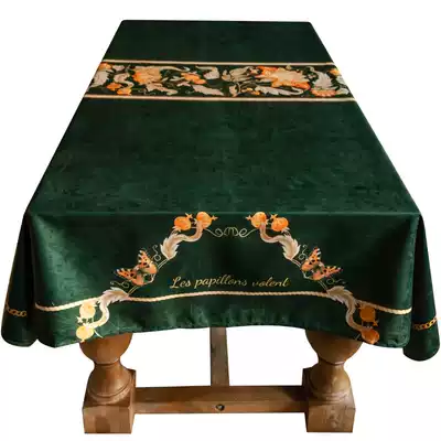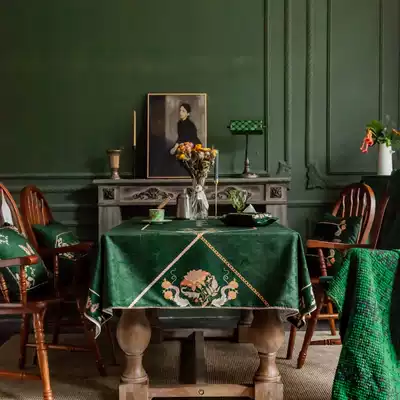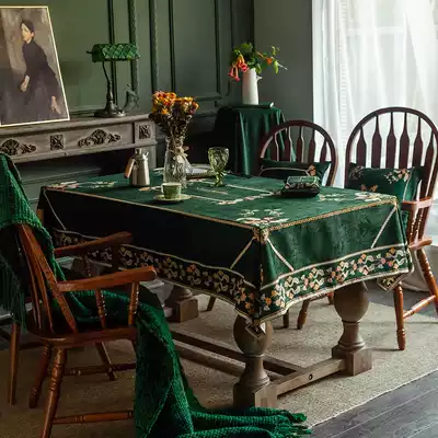 Dark green American retro waterproof tablecloth fabric European dining tablecloth rectangular tablecloth coffee table light luxury high-end