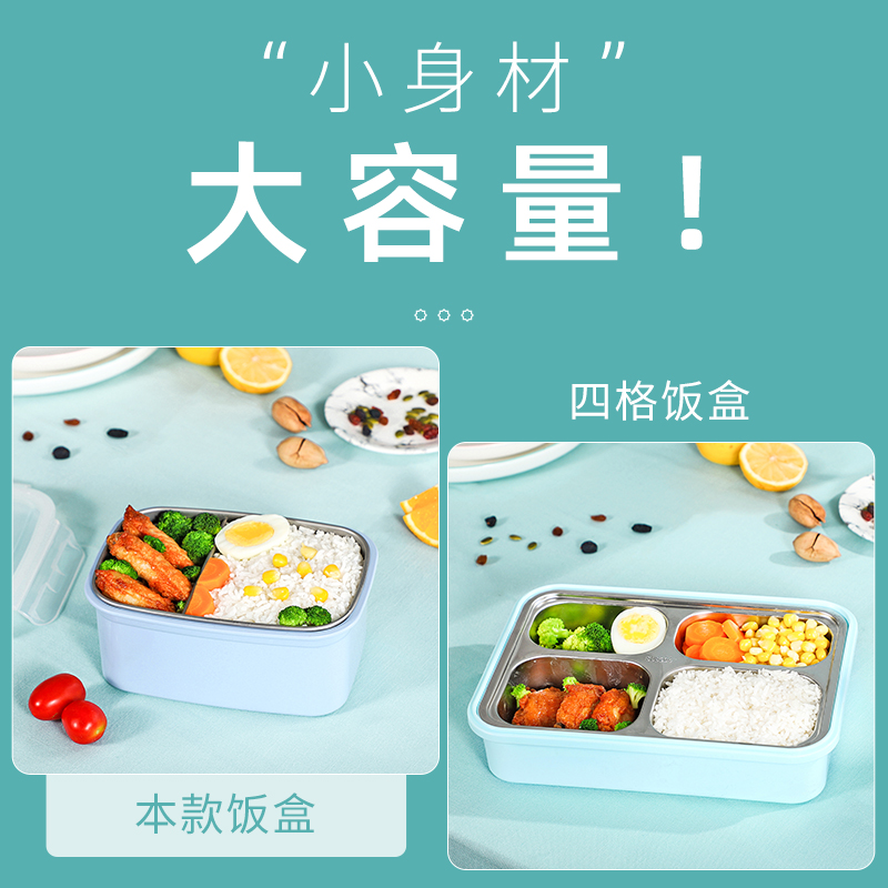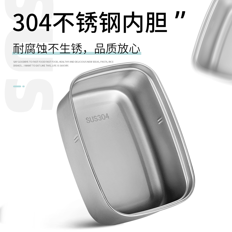 Lunch box office worker 304 stainless steel student lunch box Adult simple with lid canteen partition leak-proof lunch box