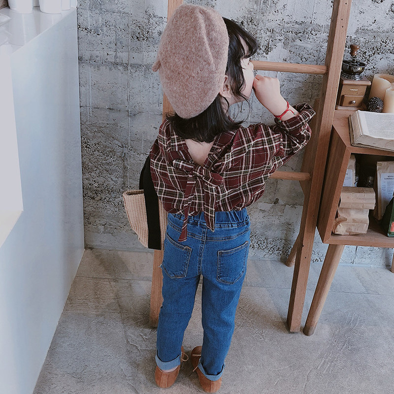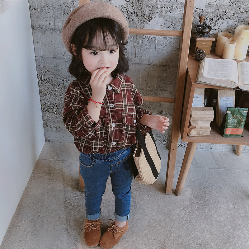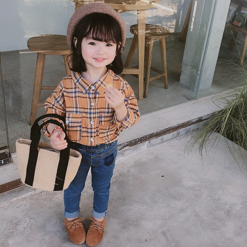 2021 girls ' spring new plaid Korean casual children's long-sleeved shirt female baby spring and autumn shirt
