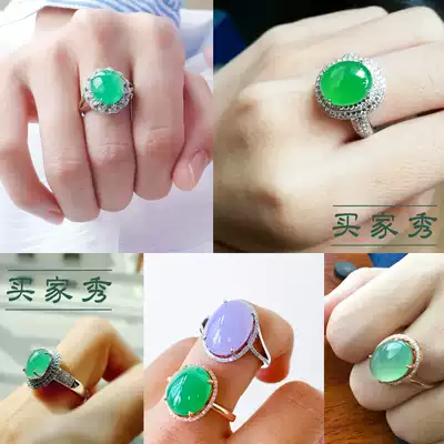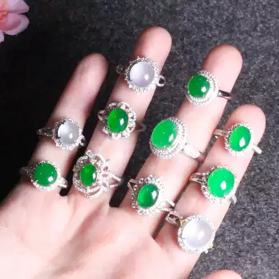 Jade ring surface naked stone green jade ring female egg noodles ice seed male ring full green pendant not inlaid 18K