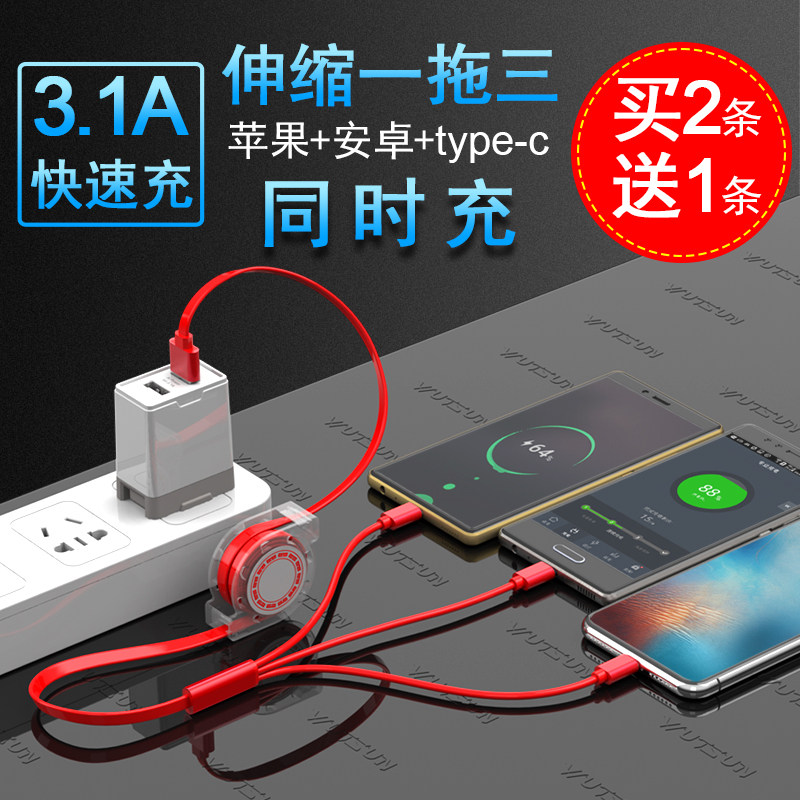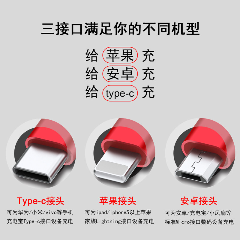 Titanium silver - Red-Terminal Three Charging Line China Red-Reduced Three Charging Line Deep Sea Blue-Reduced One-Trap Three Charging Line Tool-Reduced Three Charging Line Titanium Small Silver-Telescope 3 1A