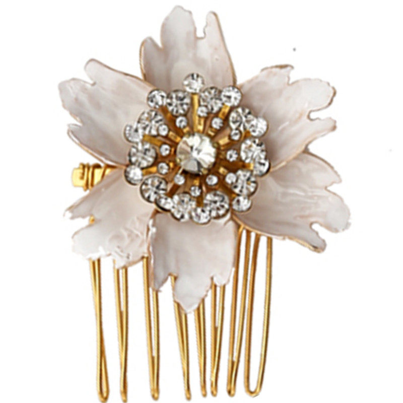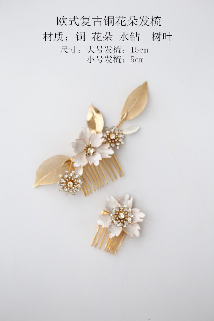 European Style Bridal Comb Rhinestone Copper Large Flower Wedding Dress Accessories