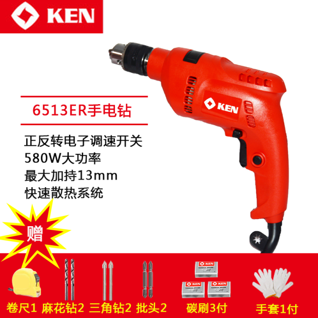 ken Ruiqi electric drill 6513ER 6523ER positive and negative speed 13mm electric drill screwdriver household high power