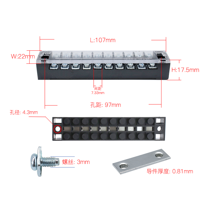 All-copper TB-1510 Japanese fence terminal block 1510L fixed terminal board 10 bits 10P