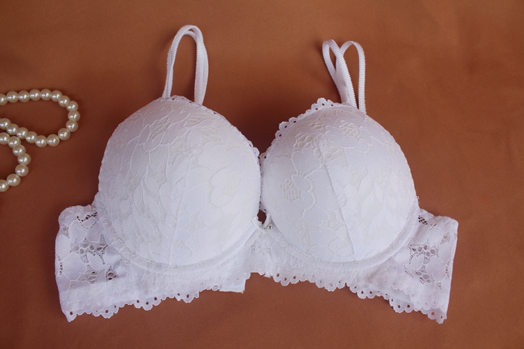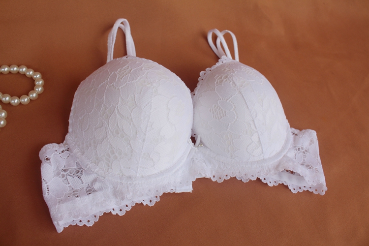 Sexy bra fun busty big export Europe and the United States underwear women white sexy lace small chest gathered bra set