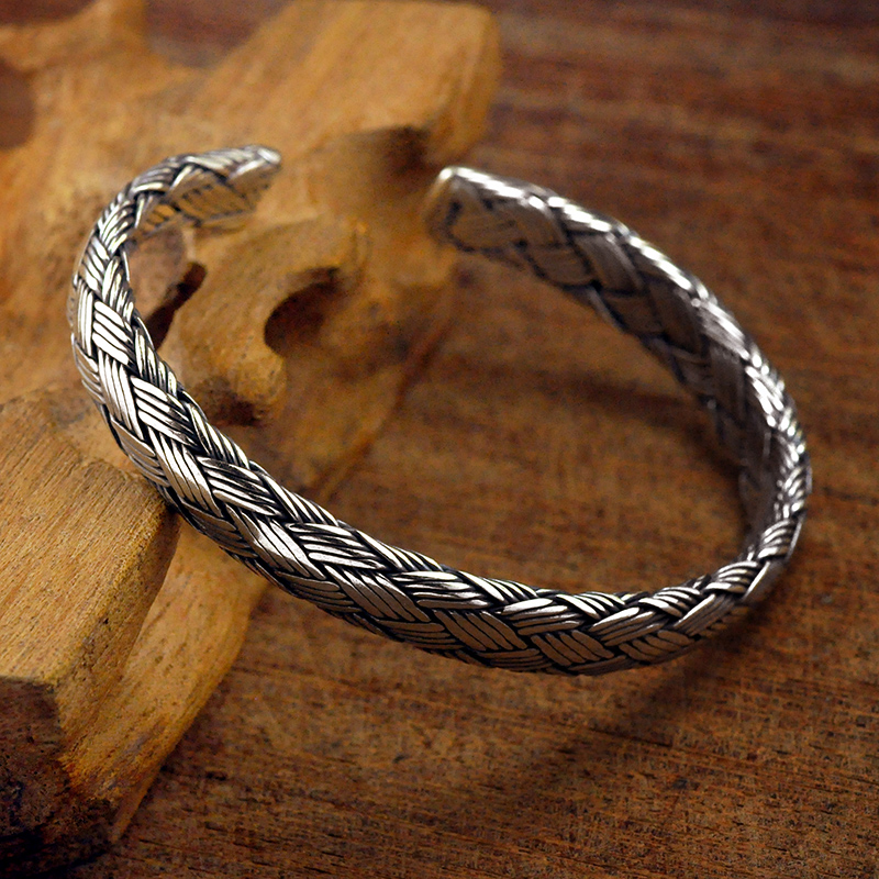 s925 sterling silver Thai silver retro interwoven hand-woven twist bracelet ethnic style wide version live mouth men's and women's bracelets