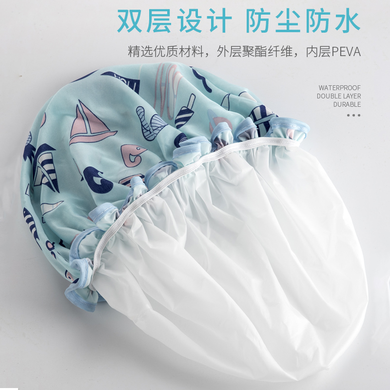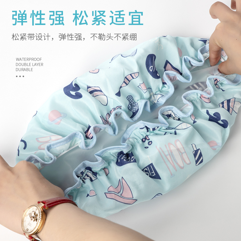 Shower cap waterproof bath hat women's head cover hat double layer bath hat shower cute cartoon hair set (Q)