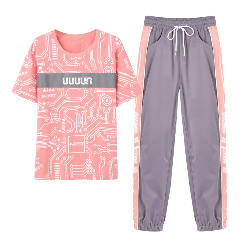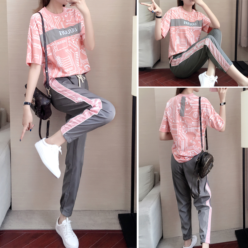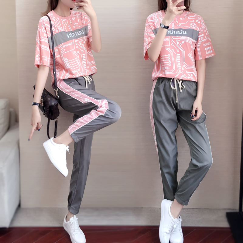2022 summer new casual sports suit women's Korean version loose and thin foreign style fashion running suit two-piece trendy