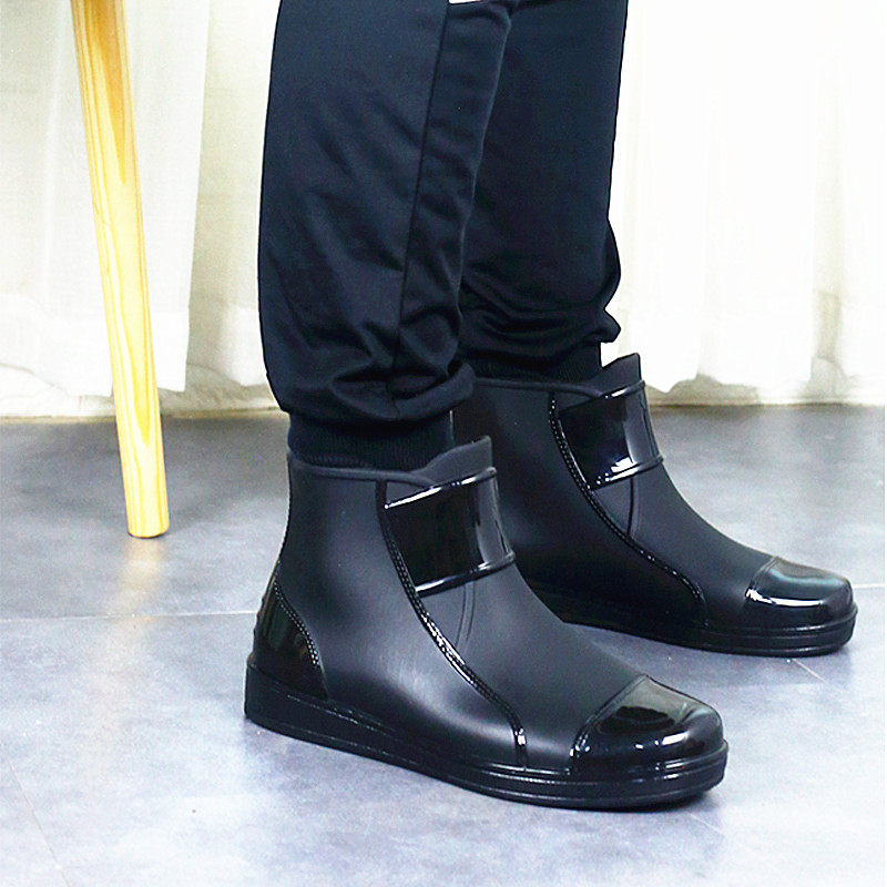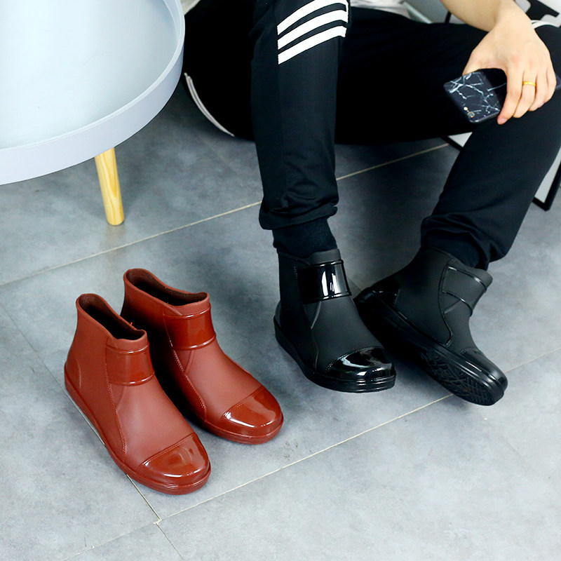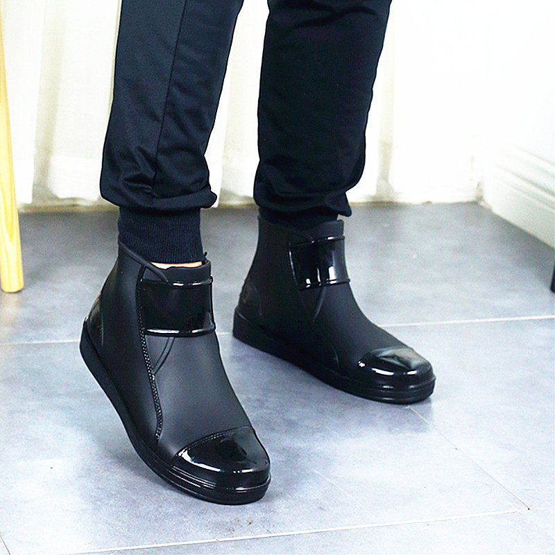 Rain boots men's flat short water shoes fashion waterproof rubber shoes adult low-top plastic non-slip rain boots kitchen work shoes
