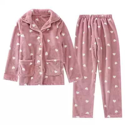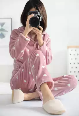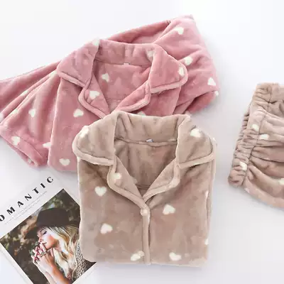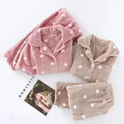 Autumn and winter coral velvet pajamas women's spring and autumn long-sleeved thickened flannel suit cute summer plus velvet home clothes