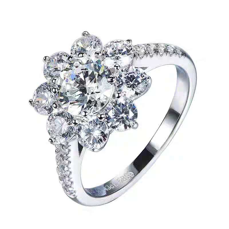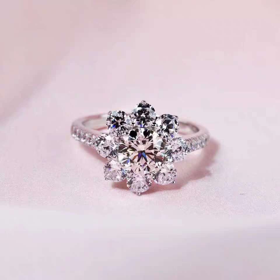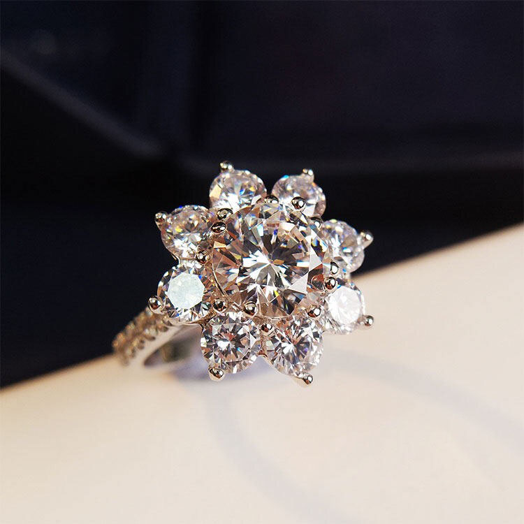 18K white gold ring inlaid with moissanite sunflower ring lotus diamond ring female wedding proposal engagement birthday gift