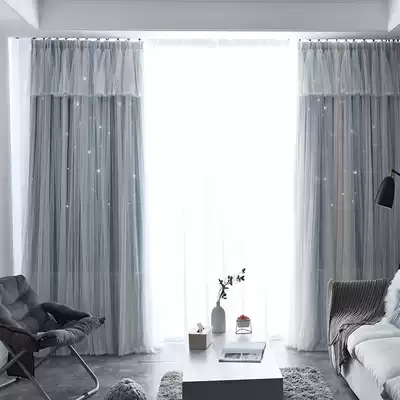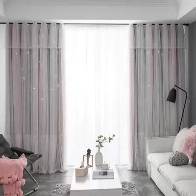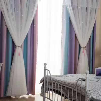Finished curtains shading bedroom living room star net red princess style Nordic simple double-layer gauze floating curtains girl heart