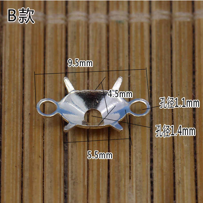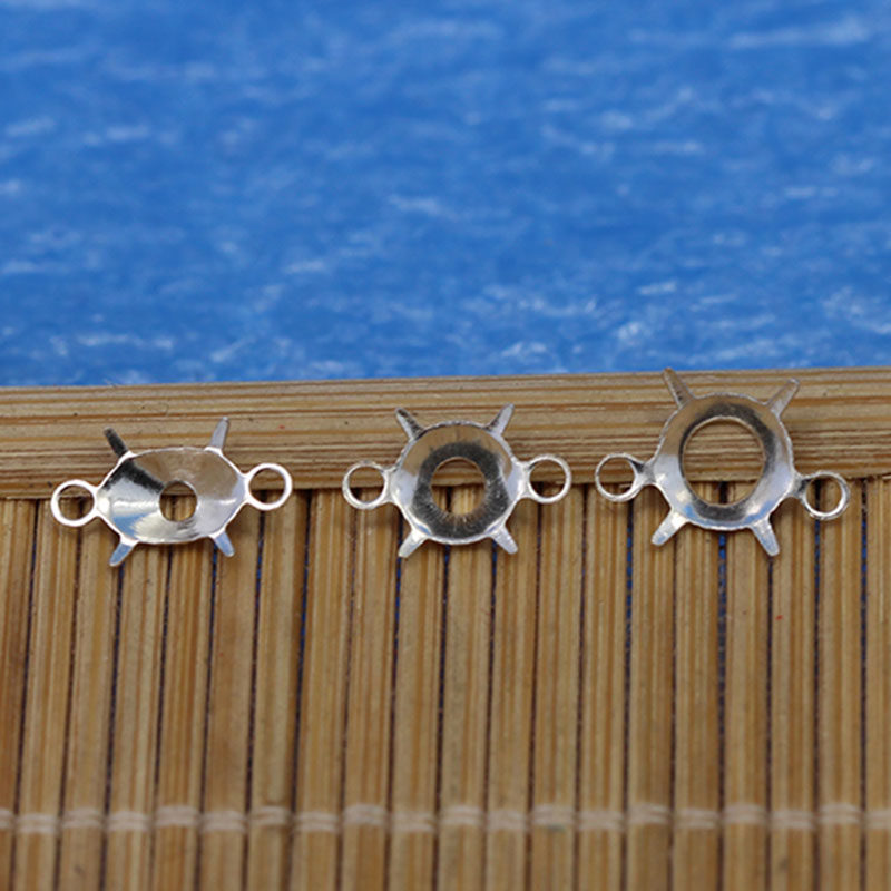 925 silver can be set zirconium diamond accessories Double ring four claws not inlaid zircon silver accessories Smart double ring connection diy accessories