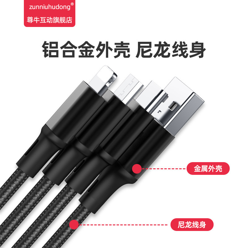 One-to-three data cable three-in-one mobile phone charging cable Apple Android type-c fast charging iphone head flash