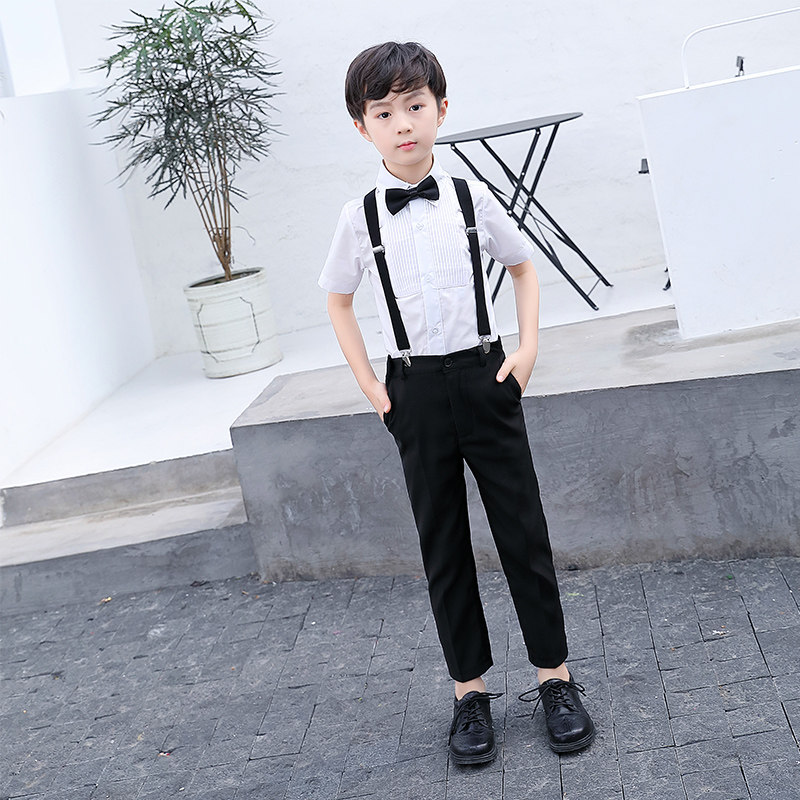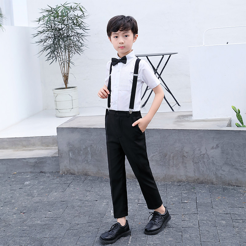 Blue Fine Striped Short Sleeve Shirt White Long Pants Black Cuddling Bag Blue White Double Collar Tie Blue Fine Striped Long Sleeve Shirt White Long Pants Black Cuddling Bag Blue White Double Collar Tie Pink Striped Short Sleeves