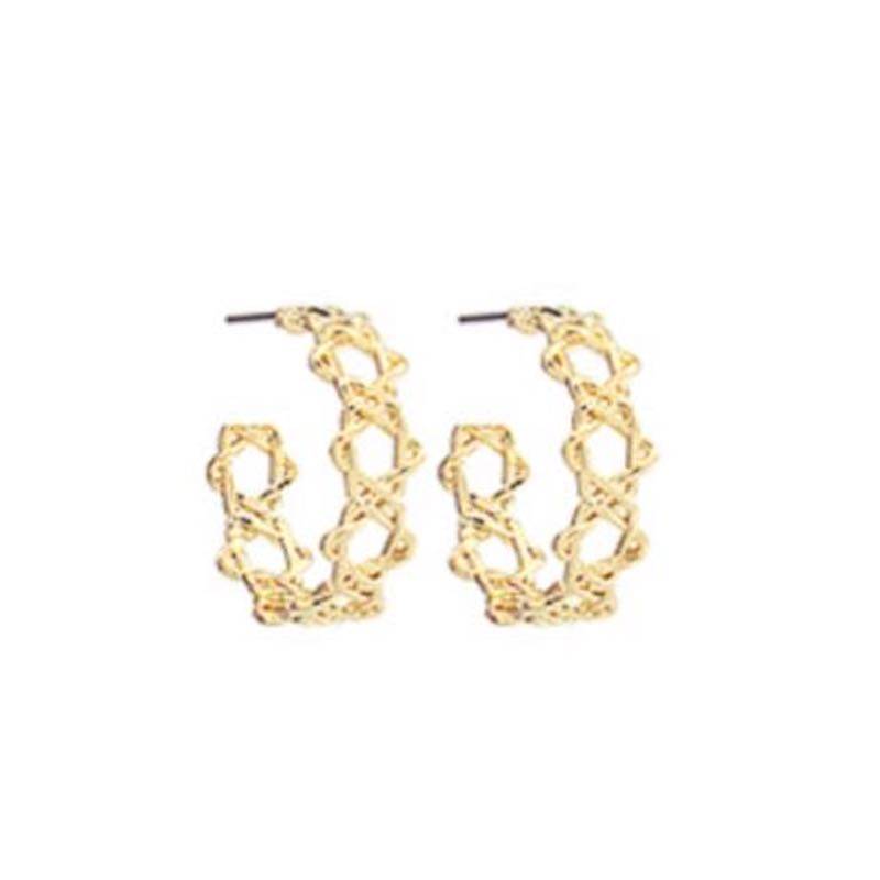 Spot Korea Pink Lisa the same gold plated Six Mans Star hollowed-out earrings
