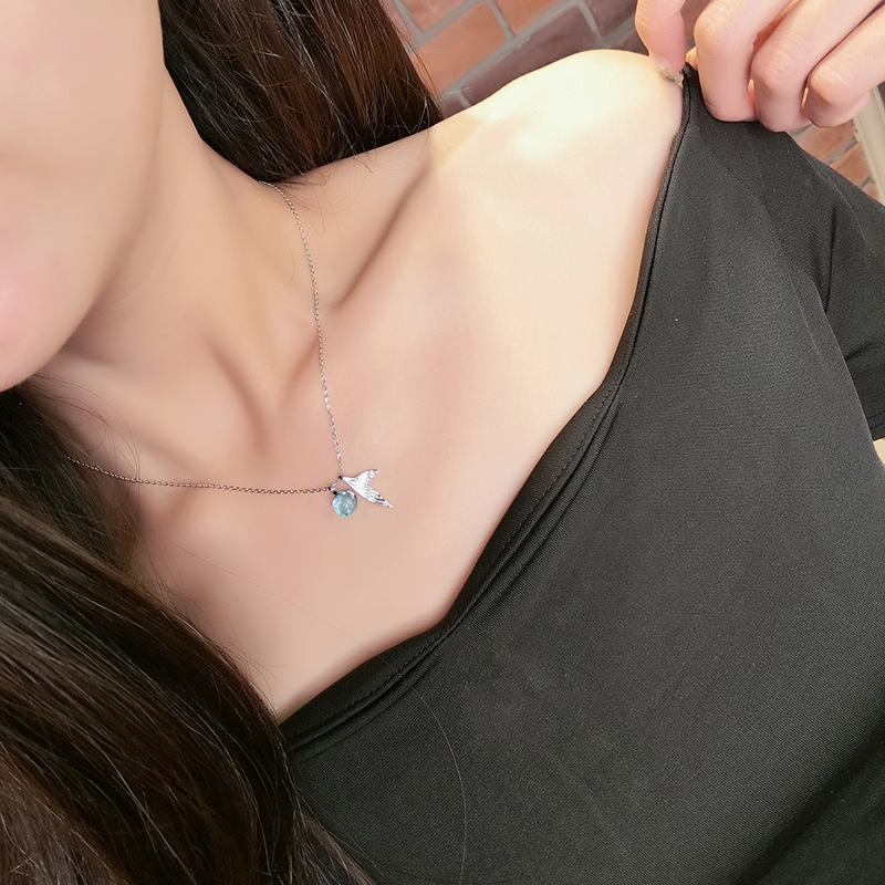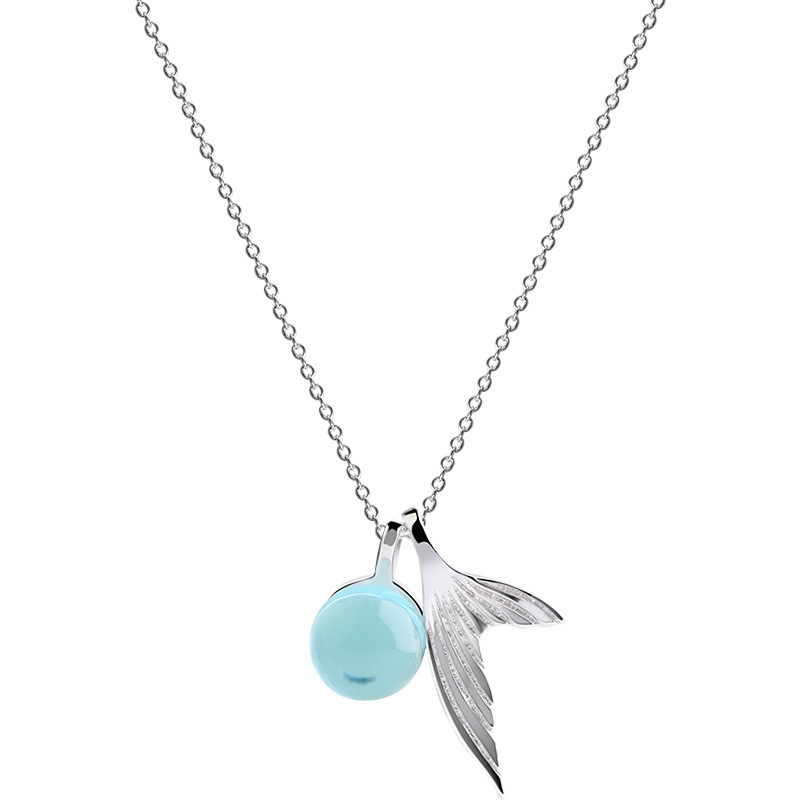 Mermaid Whale Tail Ear Needle 925 Sterling Silver Synthetic Blue Crystal Diver Personality Jewelry Ocean Necklace