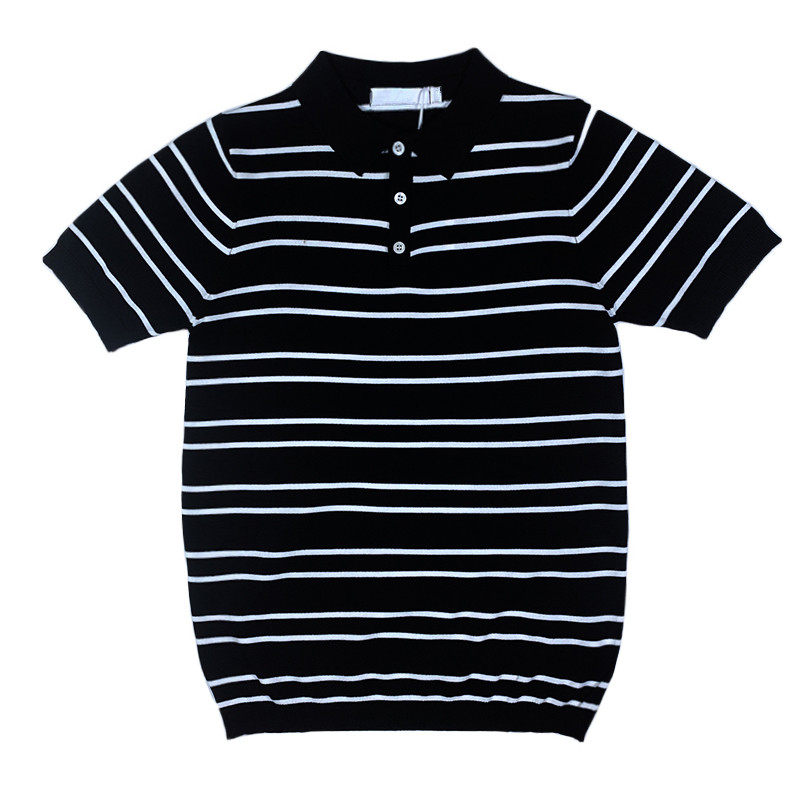 BROTHER Summer Men's Black and White Striped Polo Short Sleeves Korean Fashion Basic Versatile Lapel T-Shirt Half Sleeves