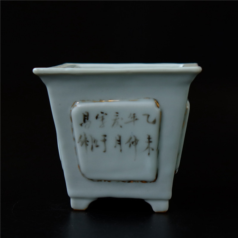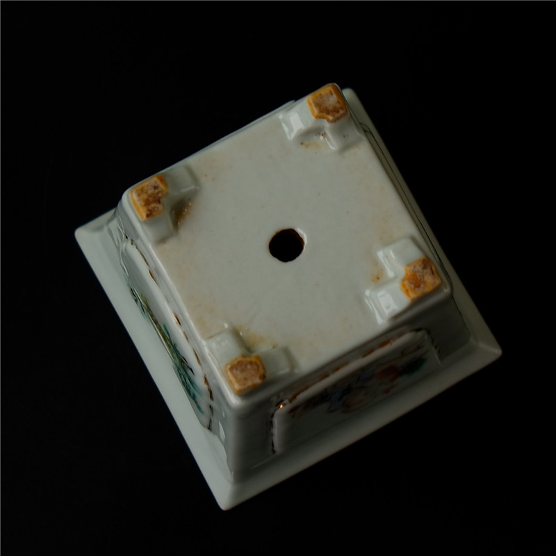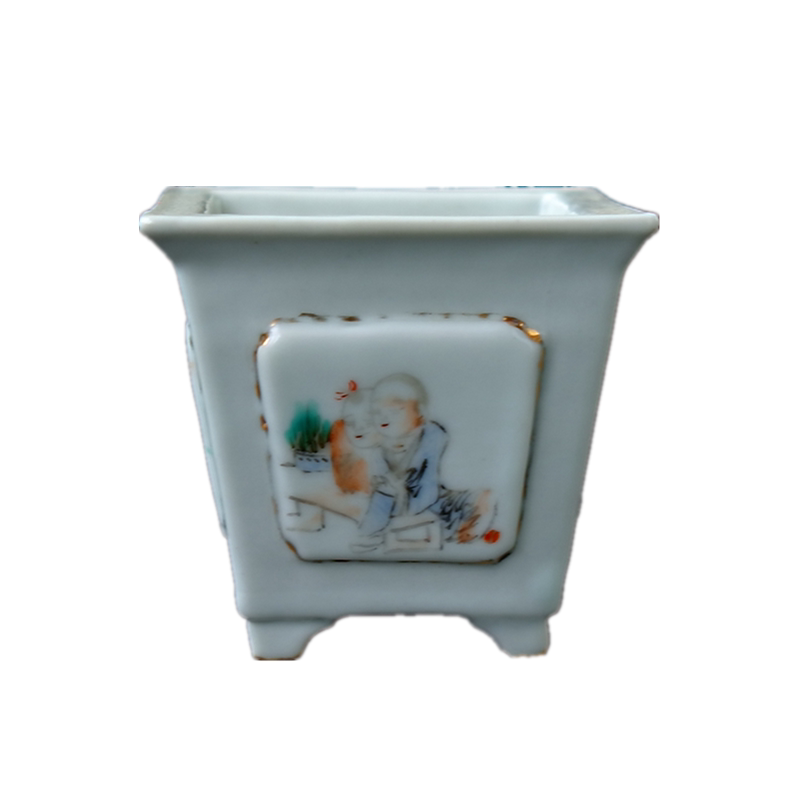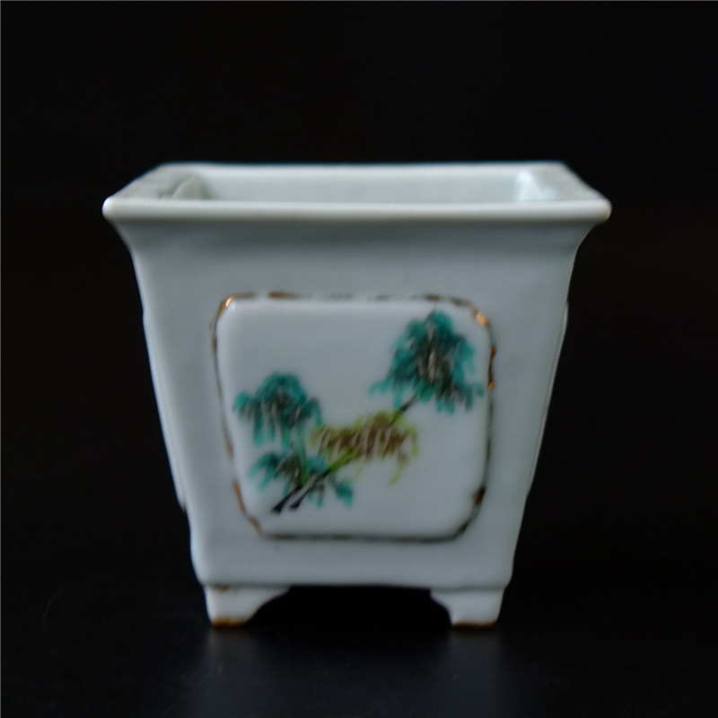Embroidery=Ge Qing Dynasty light purple color famous landscape figure calamus pot square flower pot literati porcelain ceramic art