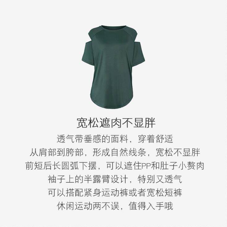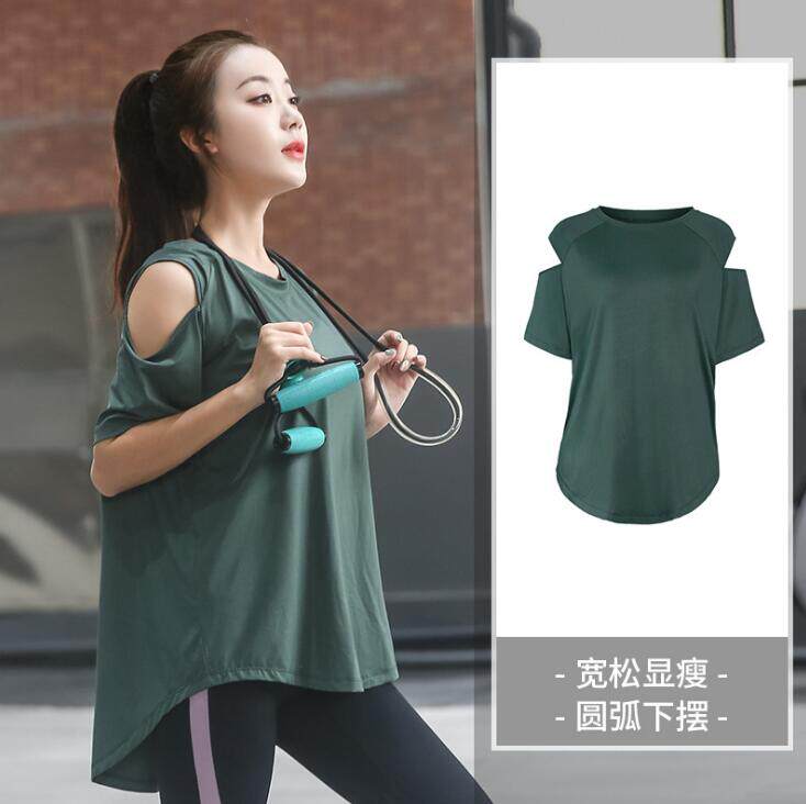 Large size fitness suit woman 200 catty weight mm display slim dew shoulder speed dry clothing cover yoga T-shirt hooded sweatshirt