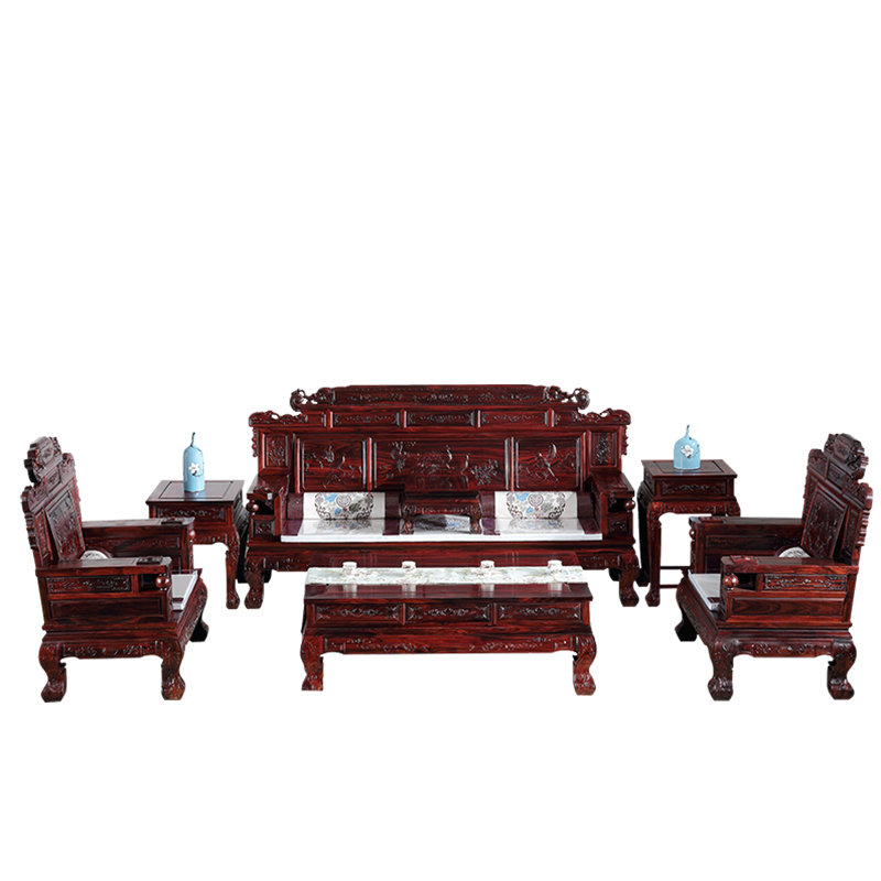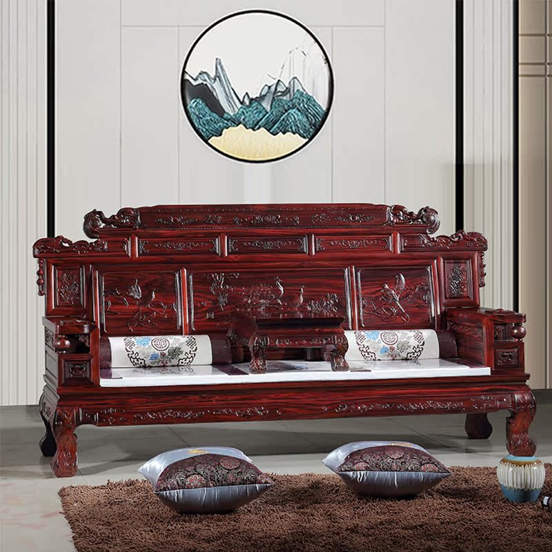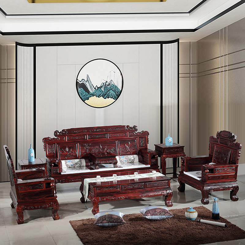 Houjing Summit Redwood furniture sofa Indonesian black branches, broad leaf lulla living room villa is installed with Dongyang wood carvings
