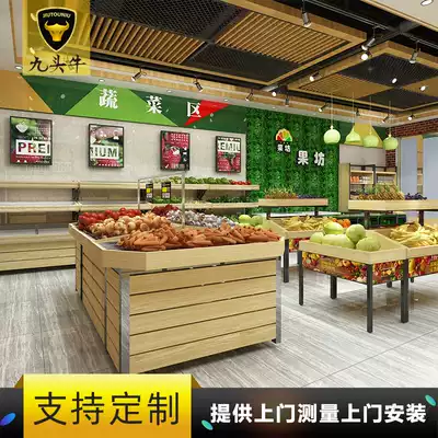 Supermarket fruit shelf steel wood fruit garden shelf new fresh fruits and vegetables three-layer wall Nakajima wooden display rack