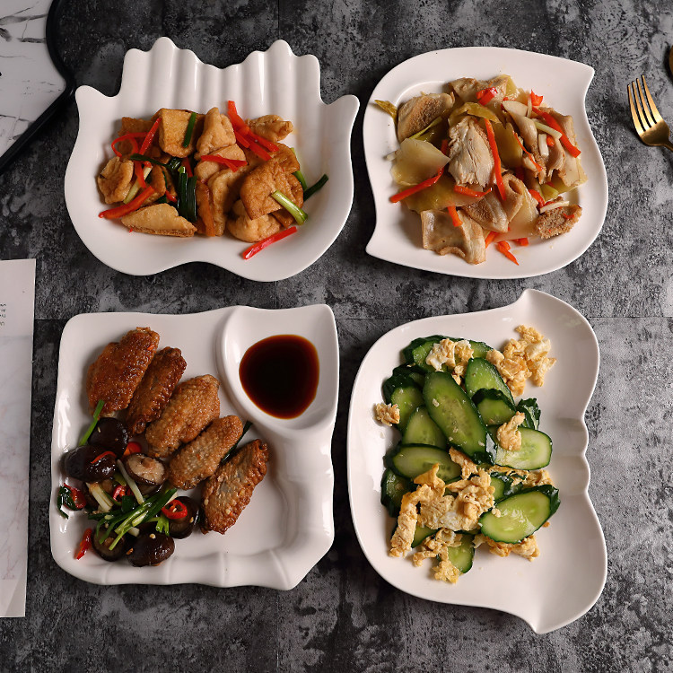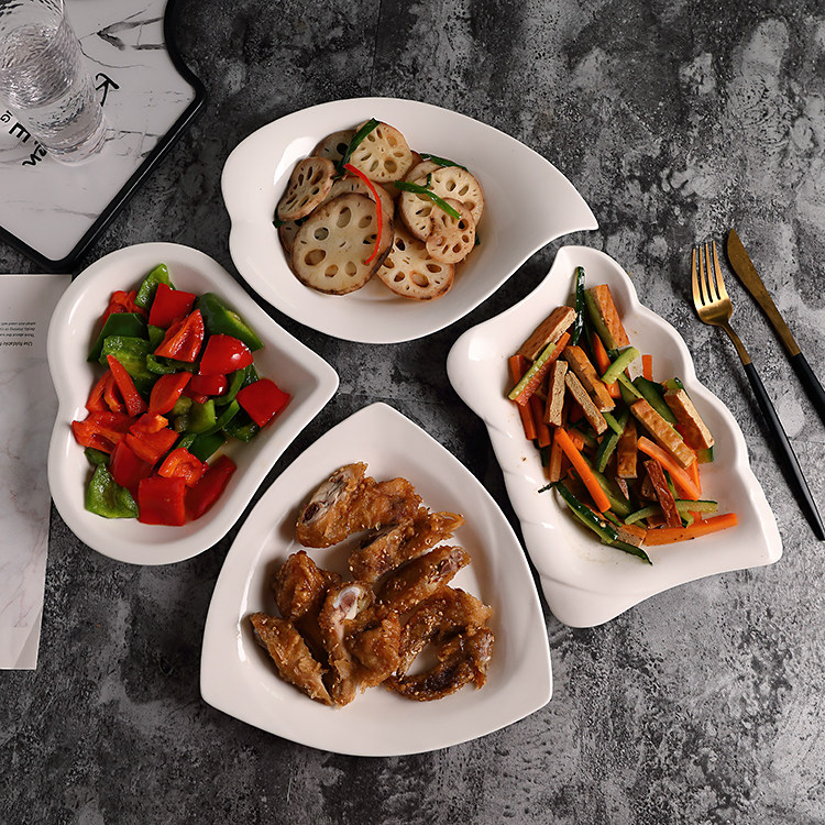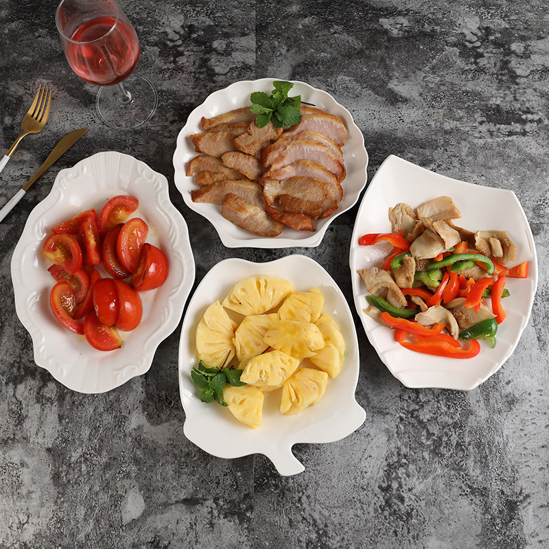 Household dish plate ceramic plate pure white dish microwave oven tableware hot and cold dish plate soup plate fruit breakfast plate