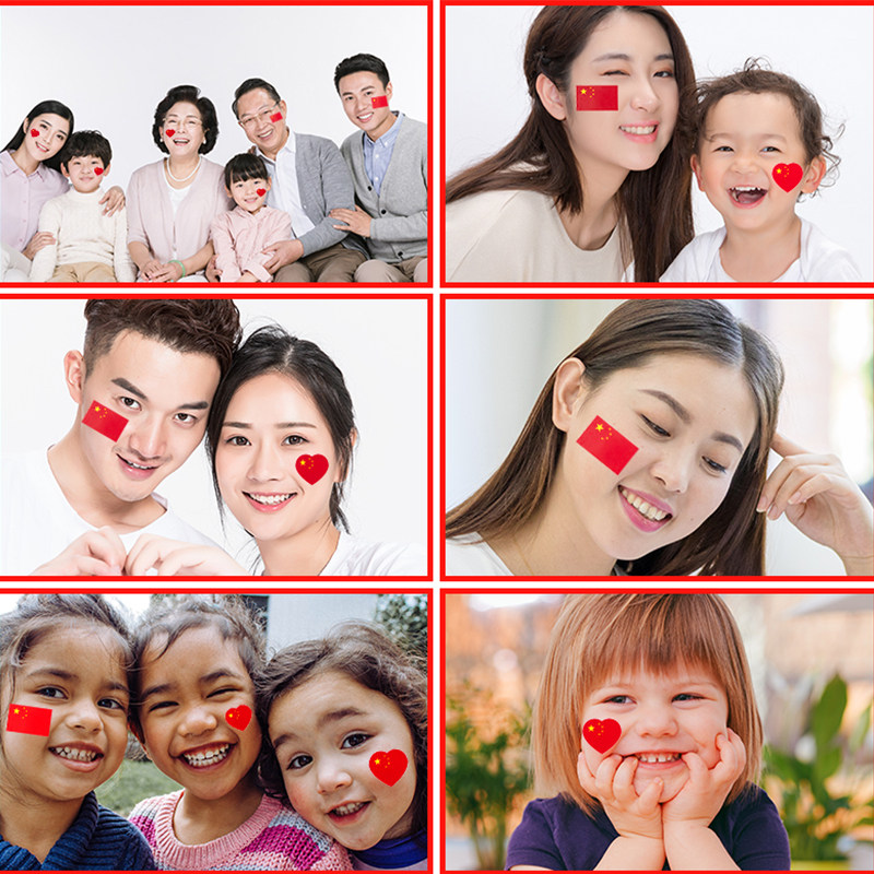 China Five Star Red Flag Flag Adhesive Sticker Face National Day Games Children Kindergarten Love Heart-shaped Stickers