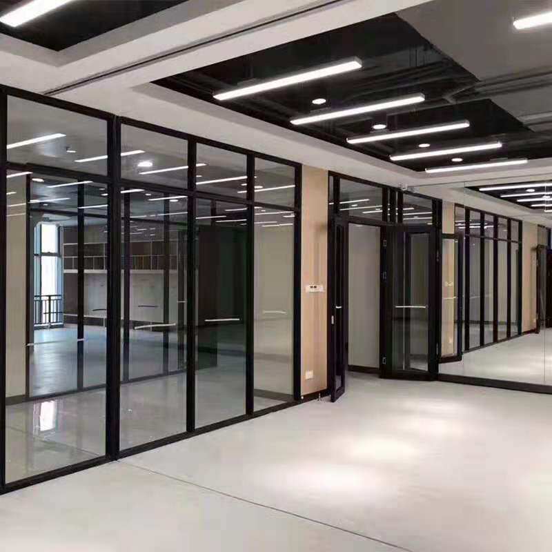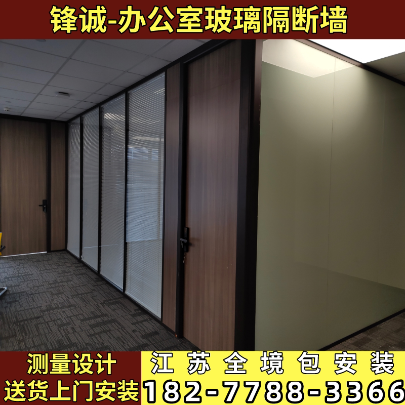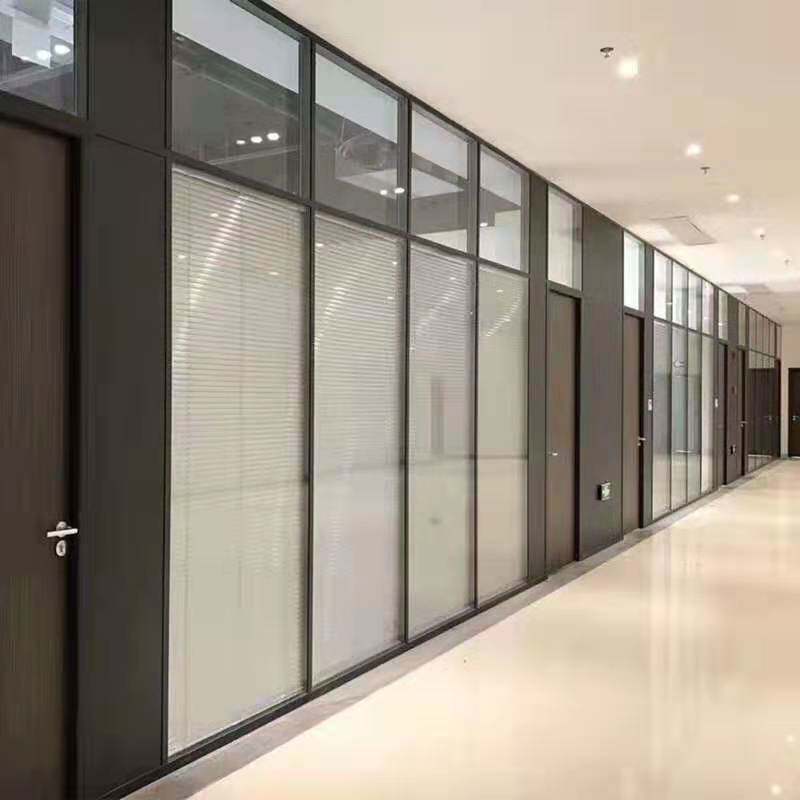 Wuxi office glass partition wall high partition plant Aluminum alloy glass wood finished double louver decoration