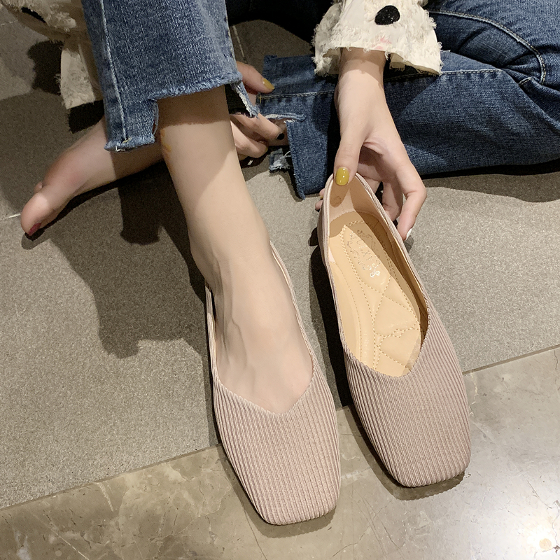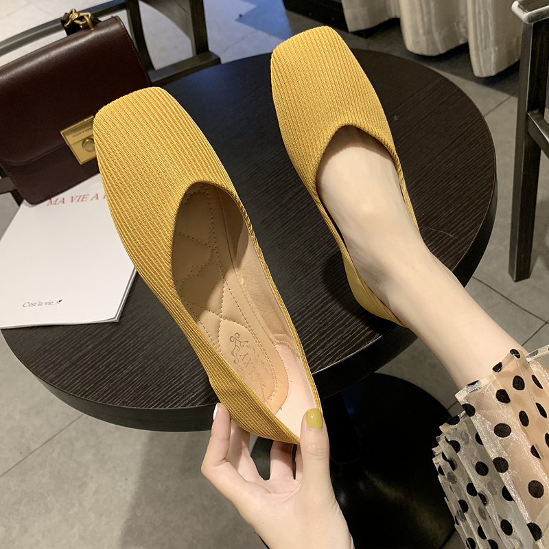 2022 Spring new Korean version Elastic Breathable Knit Single Shoes Women Flat Bottom Fairy Wind 100 Hitch a Grandma Shoe Tide